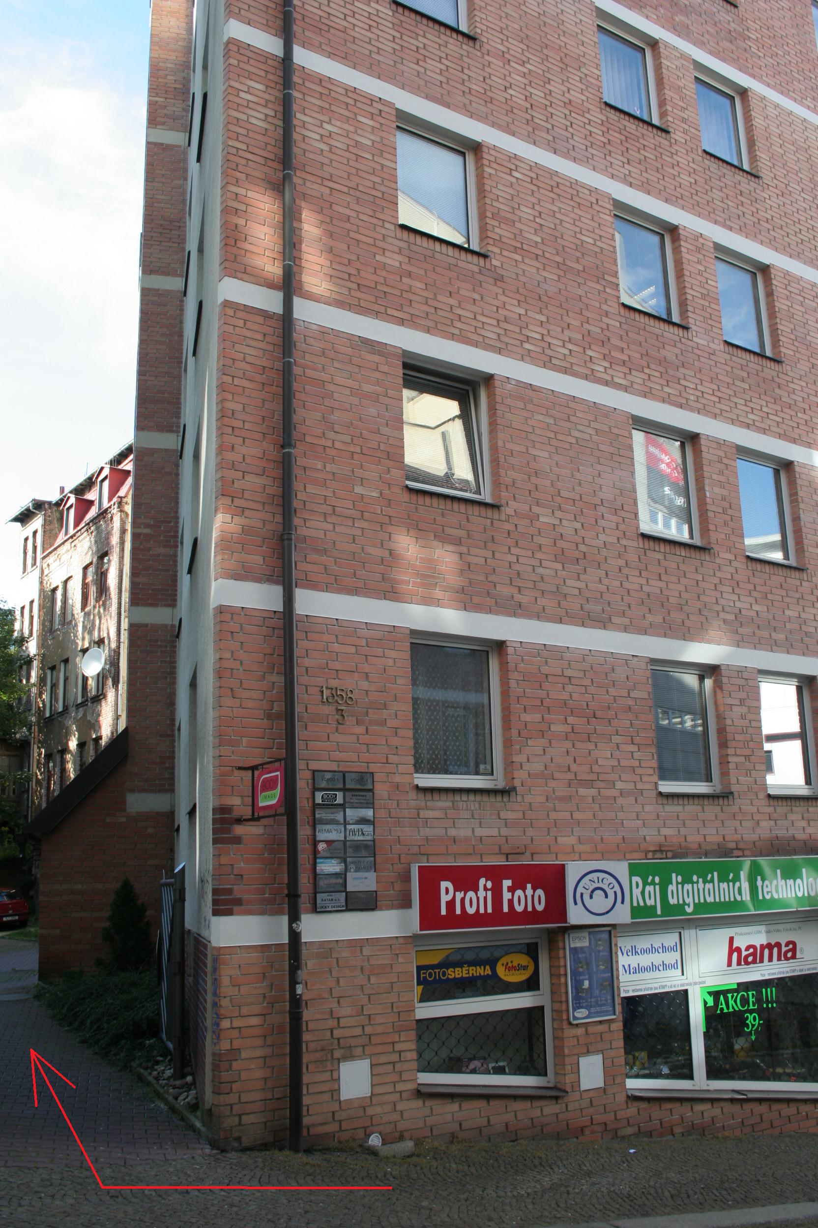Cihlová budova po pravé straně (pokud půjdete nahoru do kopce na Sokol. nám.), zahnete 1. doprava a projdete bránou na malé nádvoří, pak půjdete do 1. vchodu, zvýšené